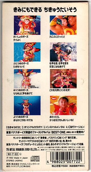 富田靖子と東京バナナボーイズの共演による’92年作「ちきゅうのうた」CDシングルです。カルビーかっぱえびせんCMソング。