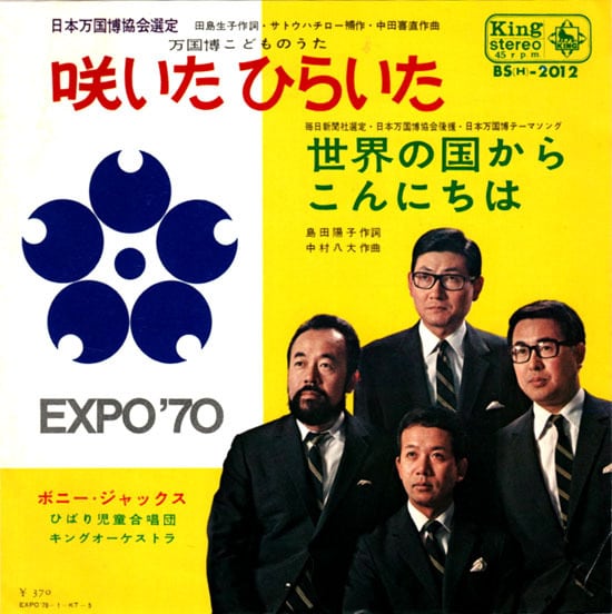 ボニー・ジャックスの’69年作「咲いたひらいた」7吋盤です。『日本万国博協会選定・万国博こどものうた』として制作された作品。作詞:田島生子、補作詞:サトウハチロー、作曲:中田喜直。