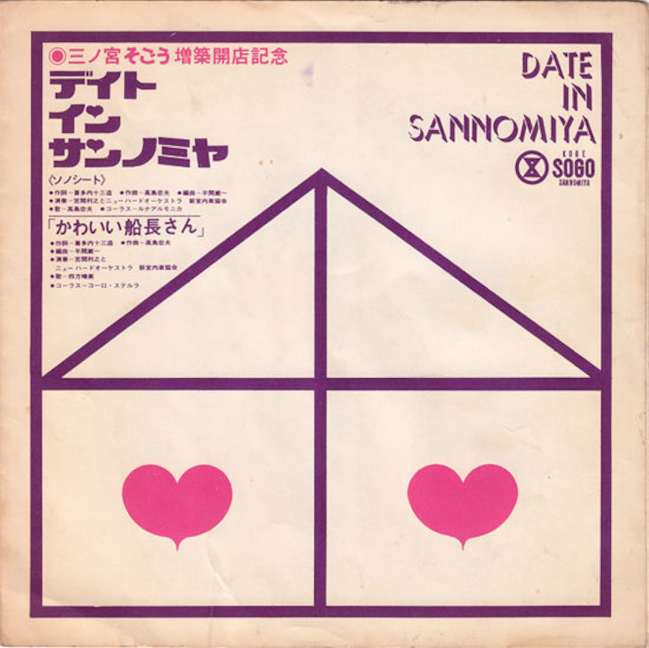 神戸・三ノ宮そごうの増築開店記念に制作された非売品ソノシートです。恐らく'66年に作られたものだと思います。作詞:喜多内十三造、作曲:高島忠夫、編曲:半間厳一、演奏:宮間利之とニューハード・オーケストラ。三ノ宮そごうで買い物したらきっと暖かい気持ちになったんだろうなぁ‥なんて想像。