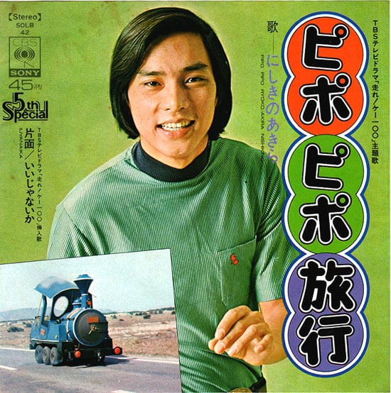 TBS系ドラマ『走れ!ケー100』主題歌、にしきのあきらが歌う「ピポピポ旅行」7吋盤です。作詞:山上路夫、作曲:かまやつひろし、編曲:馬飼野康二。'73年発売にして既に13枚目‥スターの全盛期!