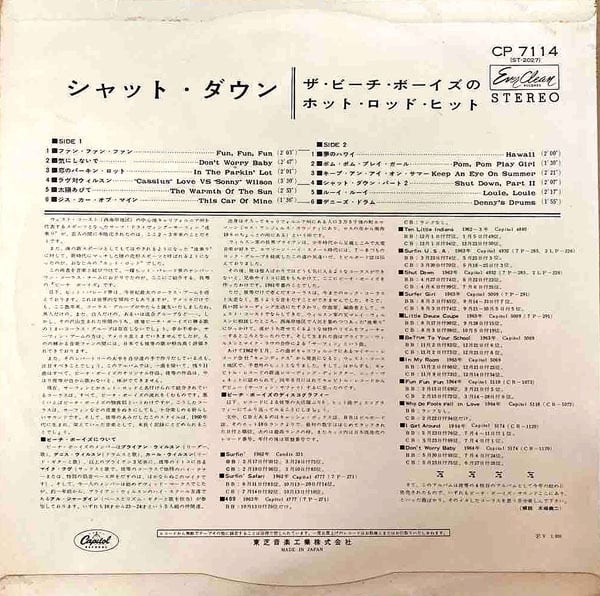 ビーチ・ボーイズの'64年作『シャット・ダウン~ザ・ビーチ・ボーイズのホットロッド・ヒット』LPです。「ファン・ファン・ファン」に始まり「デニーズ・ドラム」で終わる全12曲。夏だ!海だ!ビーチ・ボイーズだ!の時代の作品ですが、そんな単純なアルバムじゃないですな。メロディーが季節を超越している。
