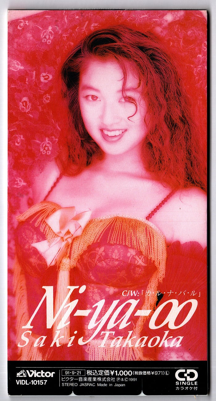 高岡早紀の1991年発売、7枚目となるシングル「Ni-ya-oo」の8cmCDです。この頃から女優業へとシフト、2013年に歌手業を再開するまではこれが最後のシングルでした。