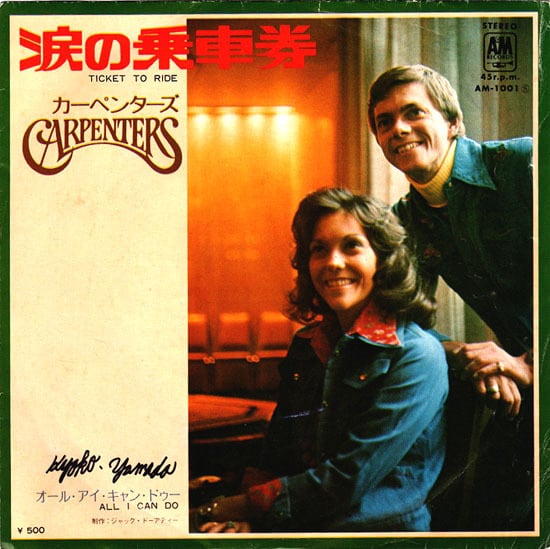 カーペンターズ「涙の乗車券」日本盤シングルです。ジャケ違いのセカンドプレス盤。オリジナル版とってもレアーですがこちらもあまり入荷しません。