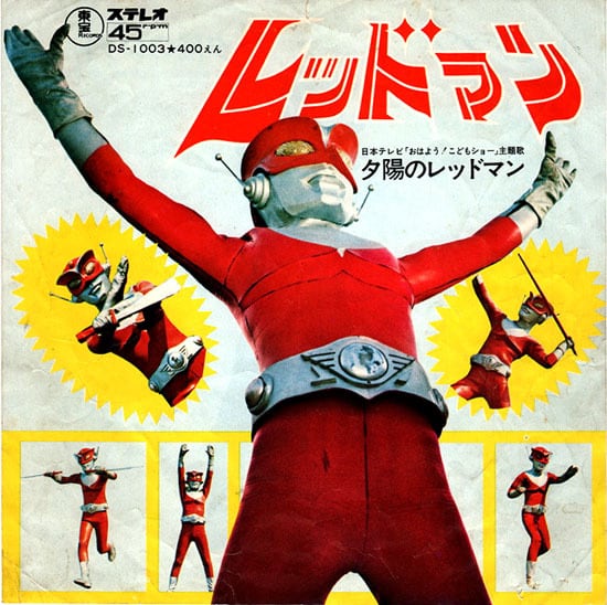 日本テレビ『おはよう!こどもショー』内のヒーローもの「レッドマン」主題歌7吋盤です。作詞:藤公之介、作曲:山下毅雄、編曲:広瀬雅一。グルーヴィーな上に、ヤマタケ先生独特のおどろおどろしさもあって一発でKOされちゃう!