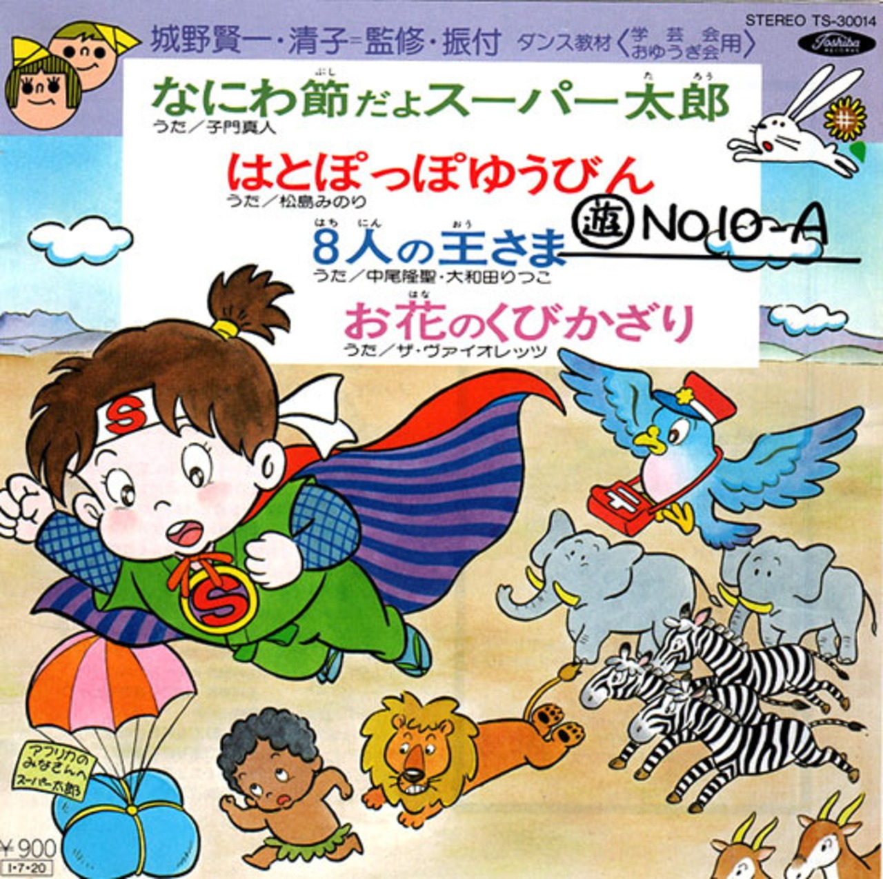城野賢一・清子=監修・振付 ダンス教材レコードです('85年)。子門真人が歌う「なにわ節だよスーパー太郎」がぶっ飛んでて最高だけど、これを聴いた子供のことを少し心配になります~