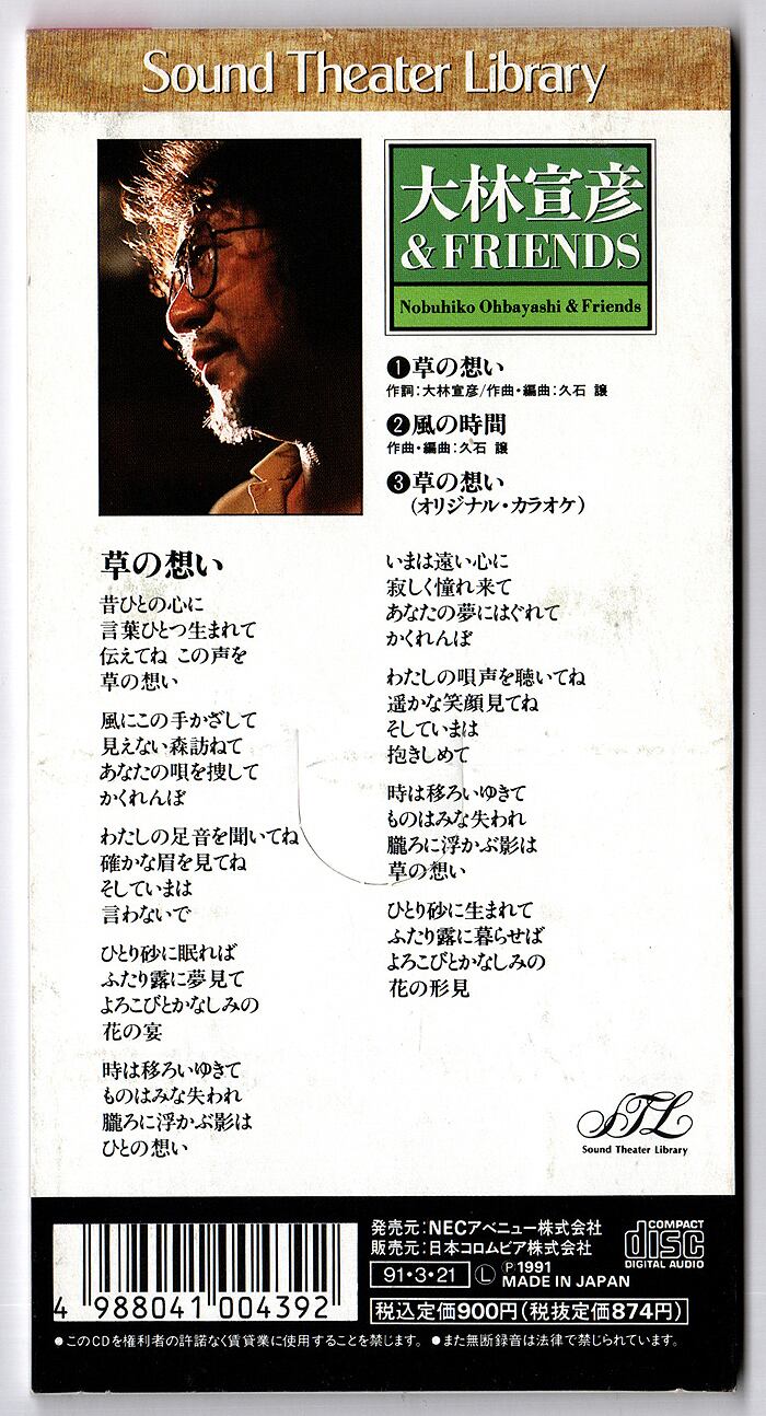 【CDsingle】大林宣彦&FRIENDS/ 「ふたり」愛のテーマ~草の想い (日本コロムビア/NECアベニュー)