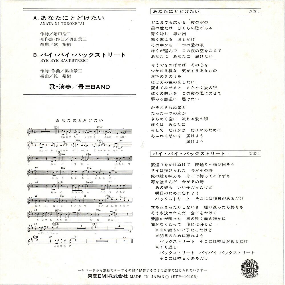【7"】景三BAND/ あなたにとどけたい (東芝EMI/EXPRESS)