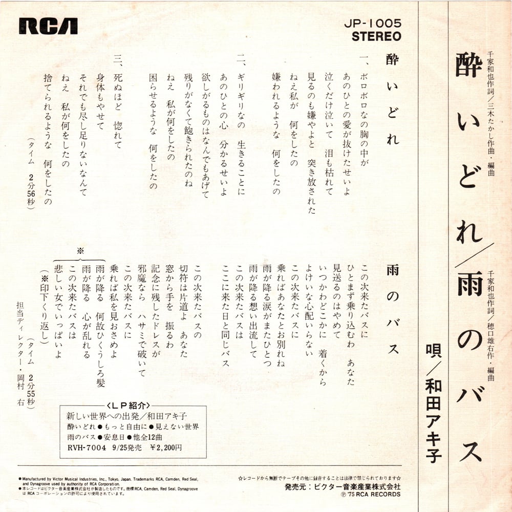 【7"】和田アキ子/ 雨のバス [B面] (VICTOR/RCA)