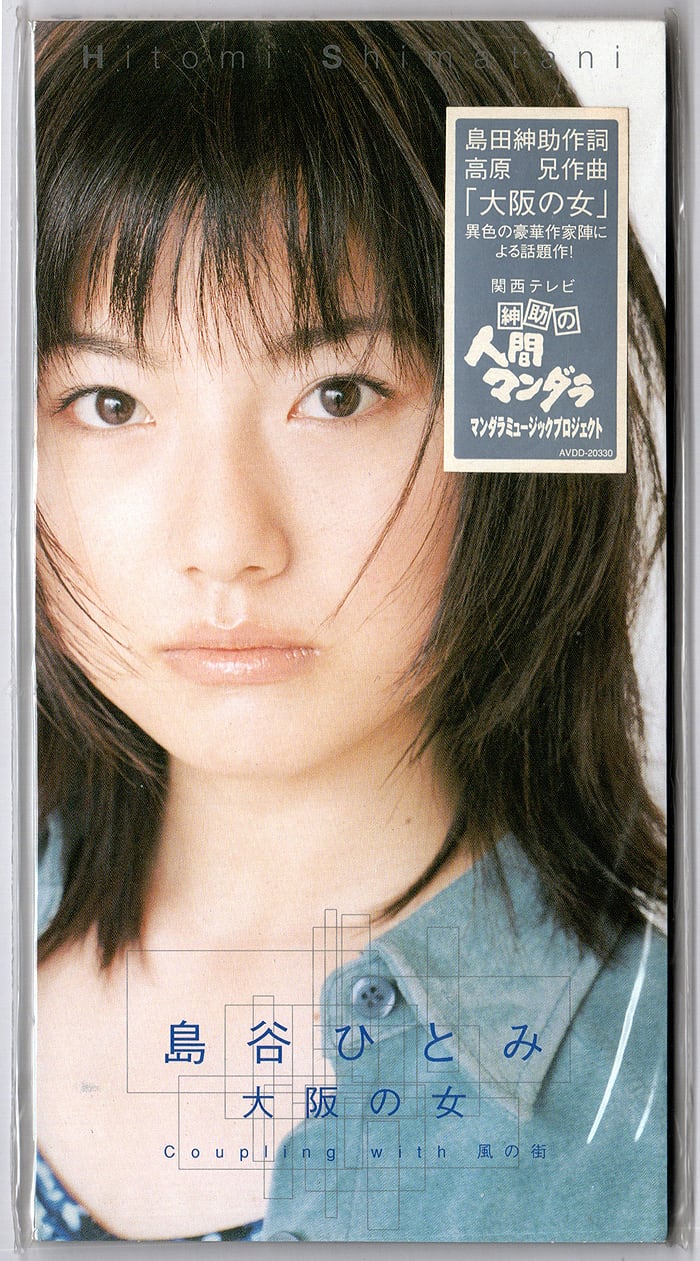 演歌歌手としてリリースされた島谷ひとみのデビュー・シングル「大阪の女」の8cmCDです。1999年、関西テレビ放映〈紳助の人間マンダラ〉の番組企画でのデビュー。自番組の企画で、作詞:島田紳助、作曲:高原兄(アラジン)の楽曲という紳助プロデュース・システムはまさにヘキサゴン・ファミリーの雛形でありますな。