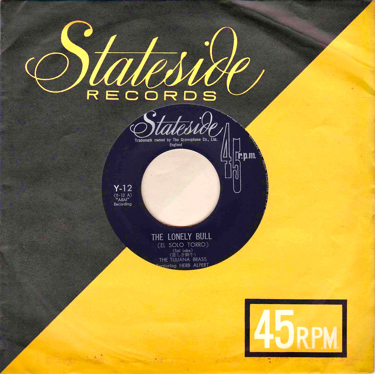 ティファナ・ブラスの1962年デビュー・ヒット、これが本邦初版のシングル・レコード!!メンバーどころかハーブ・アルパートも不在!の牛イラスト少色刷りジャケも新鮮ですが、なんといってもキング・A&M盤ではなく東芝・Stateside盤ってところがたまらなくたまらなく最高です。A&Mレコードとしても最初期盤となりますのでライナーノーツの《このレコードもやはりマイナーのA&Mというレーベルから発売された最近のヒット》という一文に歴史を感じます。