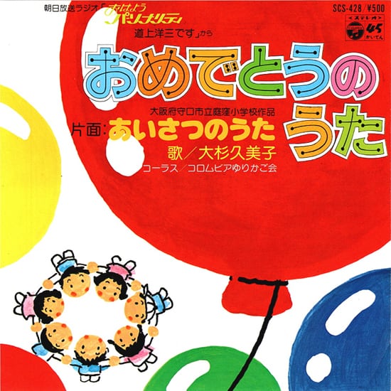 朝日放送ラジオ『おはようパーソナリティ道上洋三です』より、大杉久美子が歌うキダ・タロークラシック!「おめでとうのうた」7吋盤です。