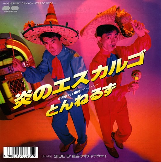 とんねるずの'88年作「炎のエスカルゴ」7吋盤です。場末キャバレー風呼び込み声入り、下世話で情熱的なラテンディスコ歌謡~♪
