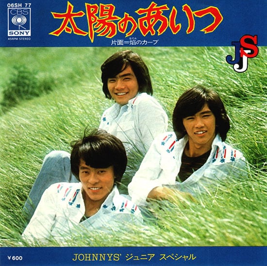 ジャニーズの看板を掲げた新旧対決‥ということになりましょうか。あおい輝彦も在籍したジャニーズ事務所デビュー第一号グループ、ジャニーズのカバー・シングル。A面にはジャニーズの大ヒット曲「太陽のあいつ」、そしてB面に怪曲「焔のカーブ」収録なのが素晴らしい。