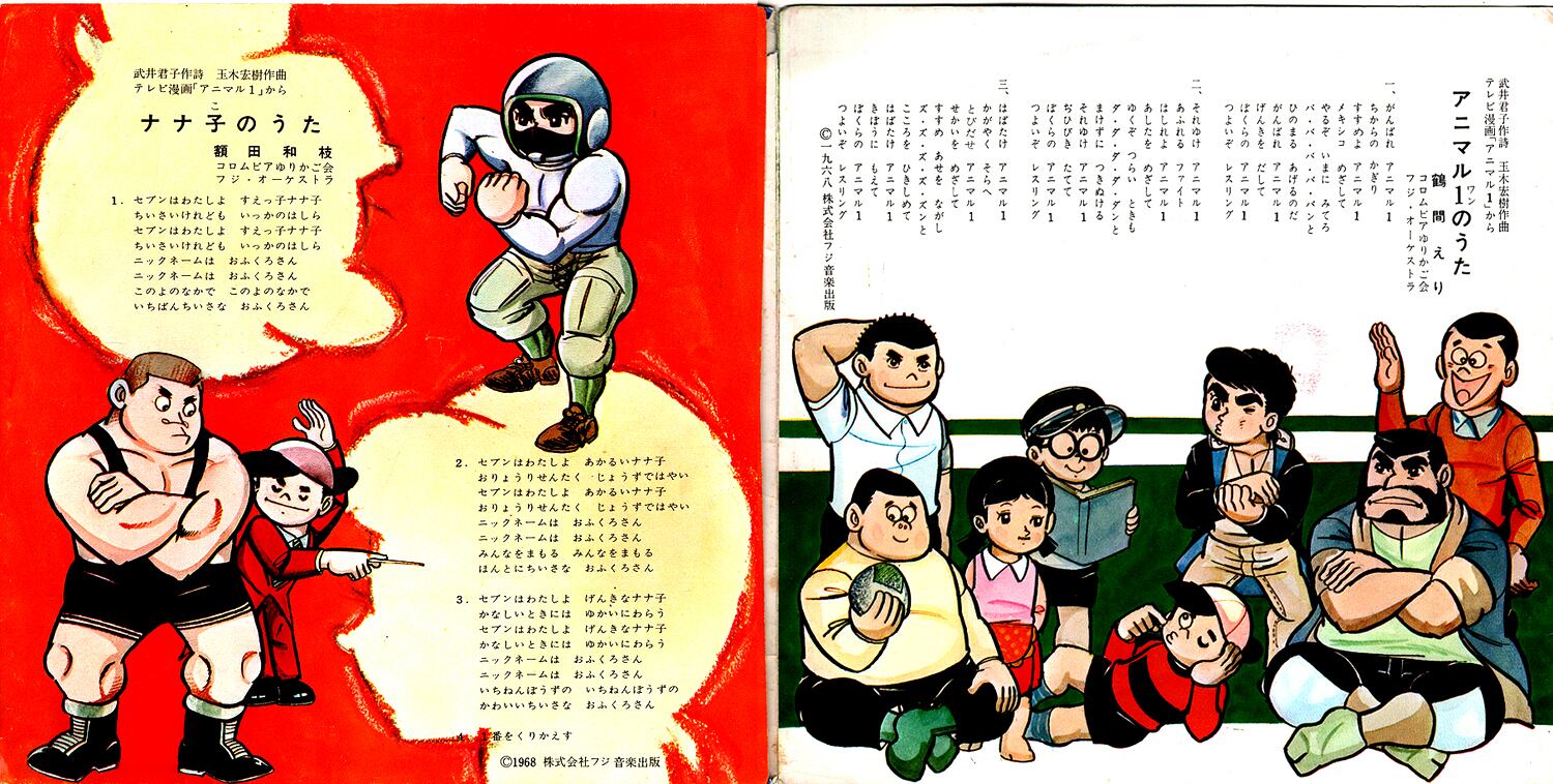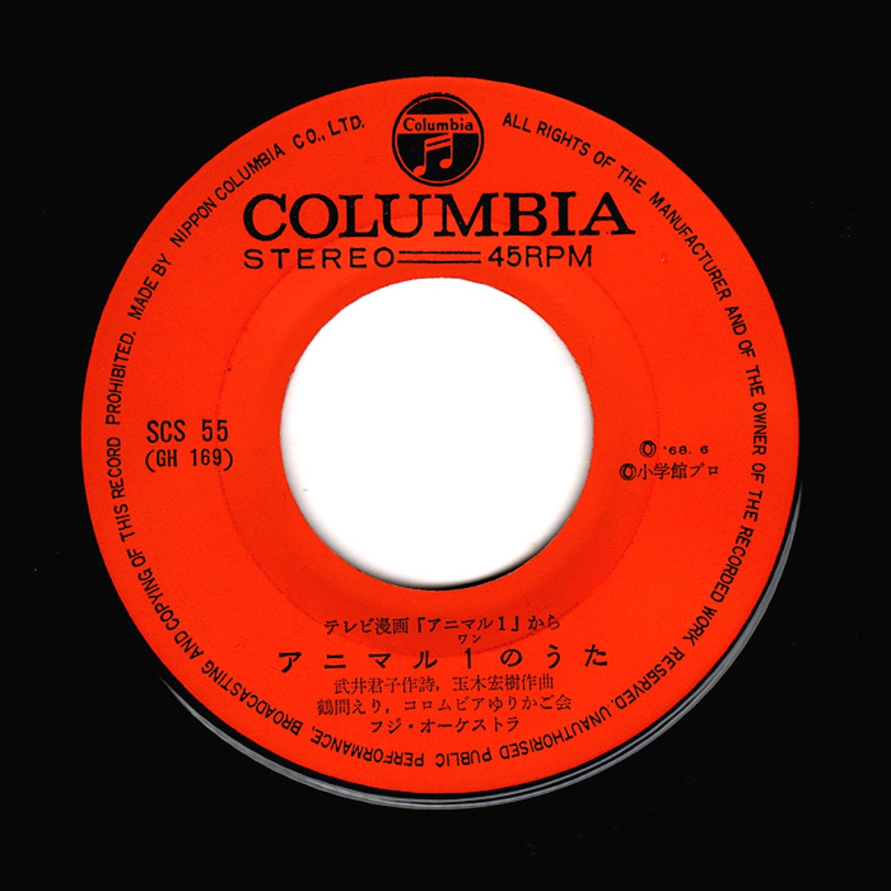 〈巨人の星〉の川崎のぼる原作、1968年放映のアマチュアレスリングでメキシコオリンピックを目指す大家族長男の物語を描いたアニメ〈アニマル1(ワン) 〉テーマ曲のレコードです。オリジナル歌手は朱里エイコで力強くソウルフルな歌唱が人気ですが、今回入荷した日本コロムビア版は鶴間えり(鶴間エリ)が歌っているものなのです♪