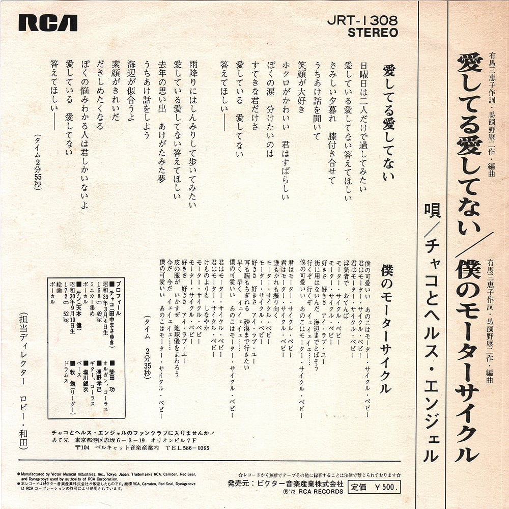 当時弱冠15歳だったチャコこと田中まさゆきをセンターに据え、後にゴダイゴへ加入することになる浅野孝已やGSバンド、ザ・サマーズの塩川銀次、牧勉らがバックを固め、実力を兼ね備えたエスペシャリーなロック・アイドルとして活動したチャコとヘルス・エンジェル。1973年発売のデビュー・シングルがこの「愛してる愛してない」です。